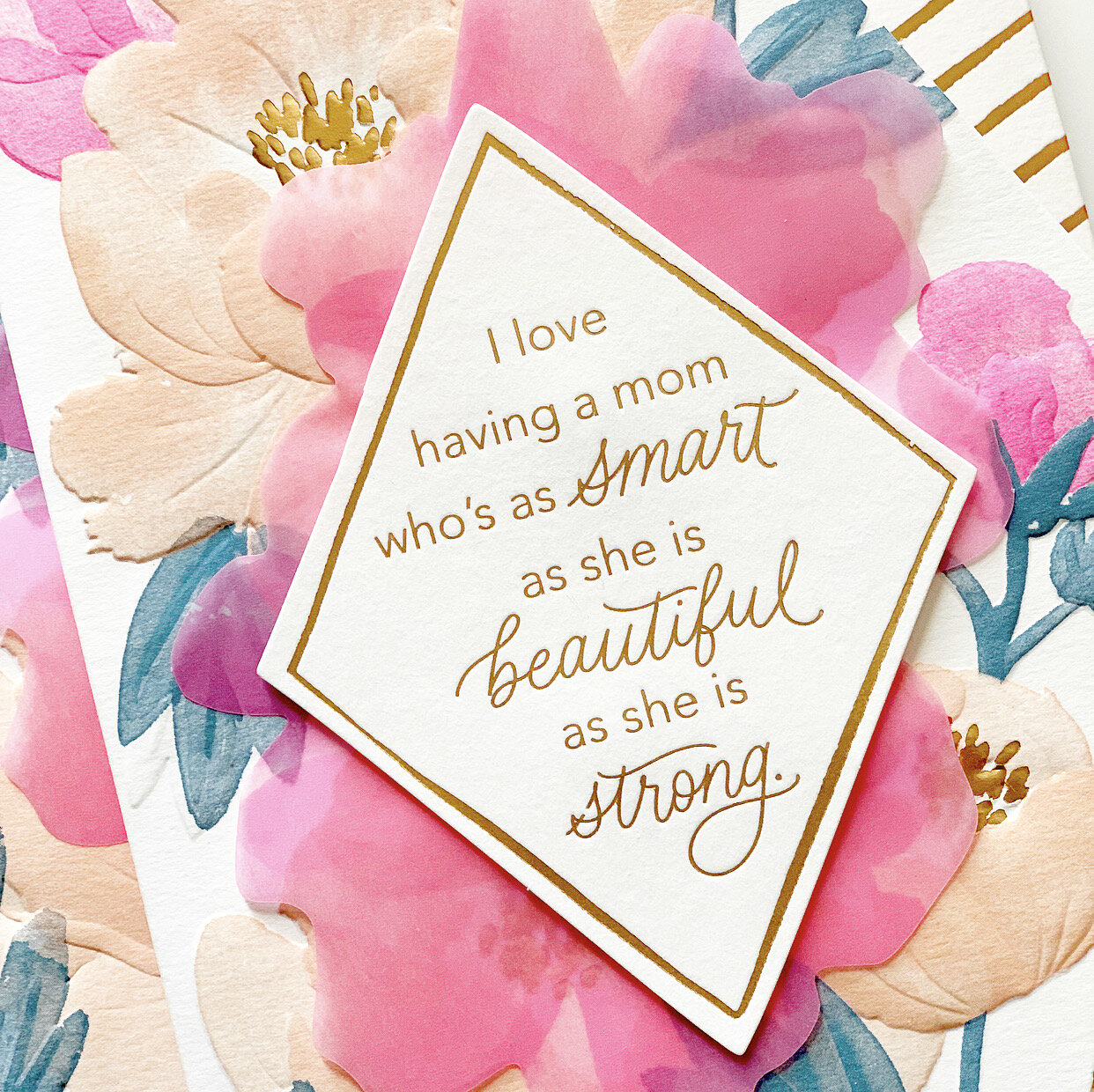 Super excited to have seen a recent collaboration with American Greetings for Target in the wild. I love the way the embossing and neon coral/vellum turned out on this one.